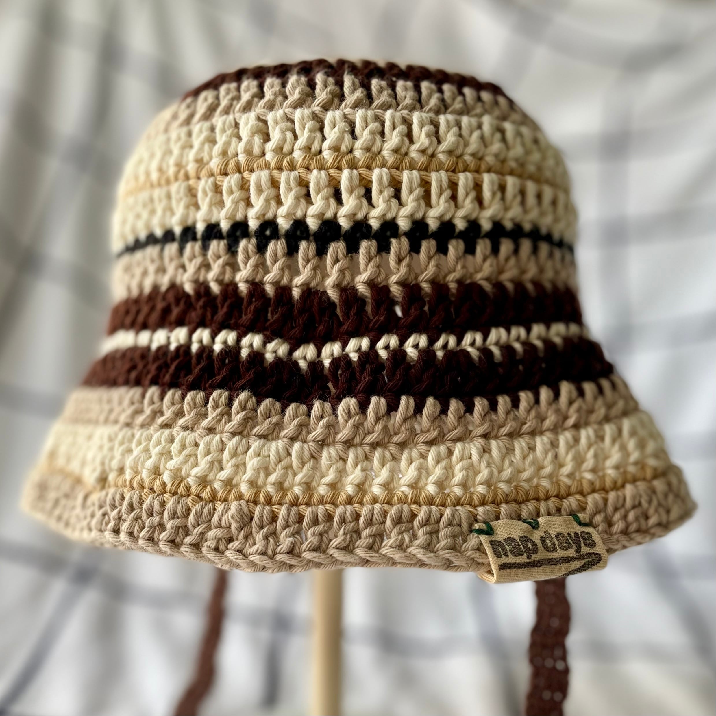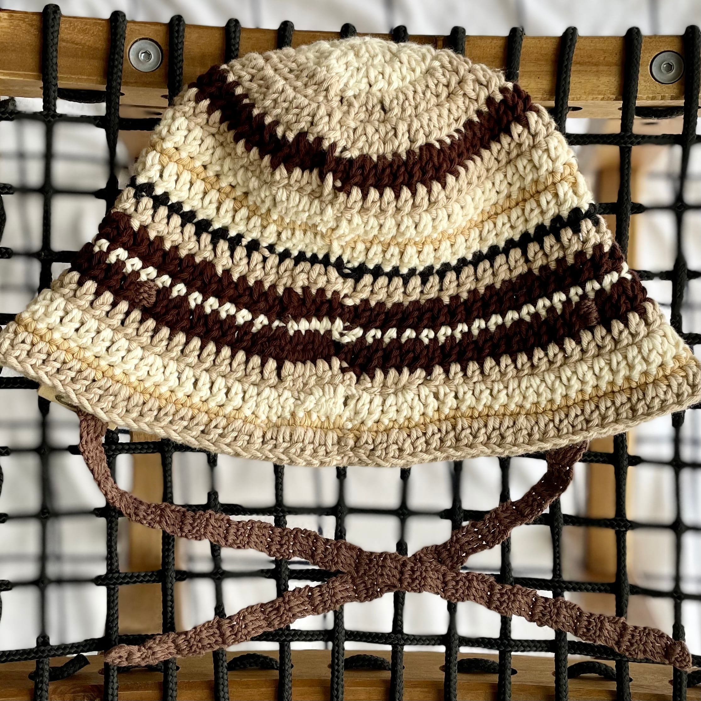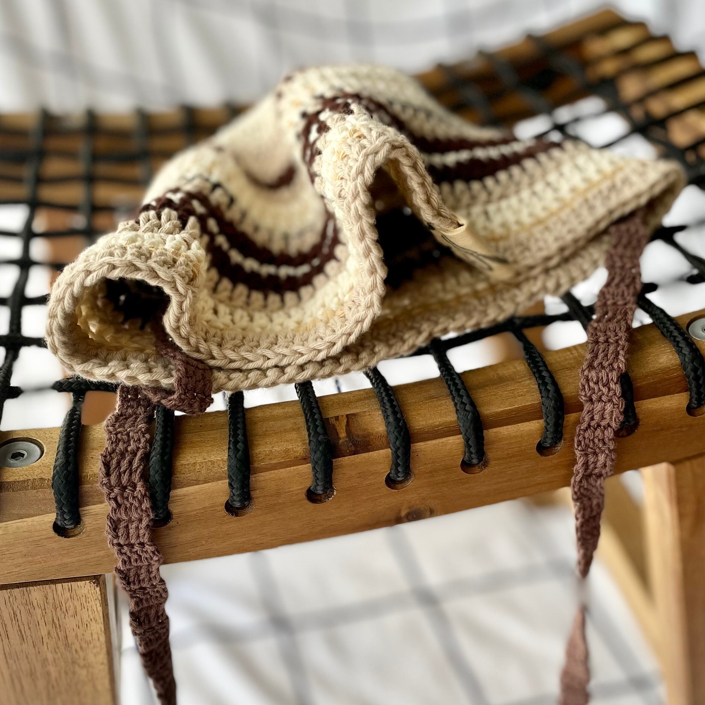 秋色ブラウンマルチのコットンクロシェハット
